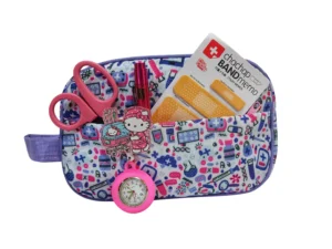 y medicina en colores rosa y blanco así como un compartimento interior